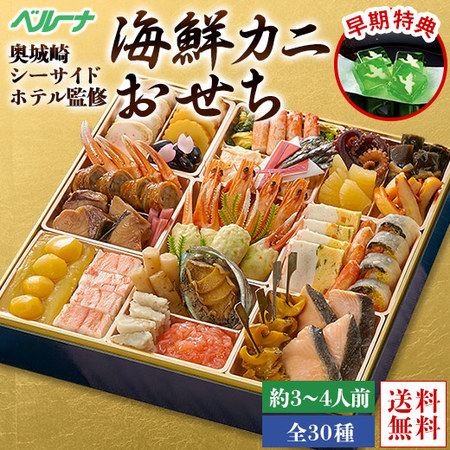 ●奥城崎シーサイドホテル監修海鮮カニおせち/和洋 一尺一段重(盛付済)/約3-4人前/全30種