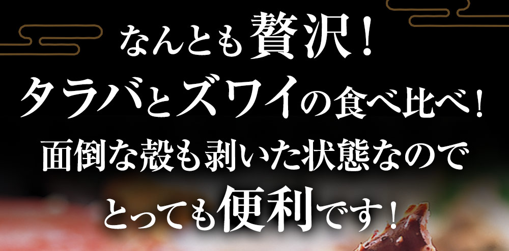 年末年始の子供達の帰省に合わせ購入しました。届いてまずはタラバの大きさビックリ!つぎに食べてプリプリの食感、カニの香り、味に思わず美味しいっ!と家族みんなで大満足のカニ三昧を味わいました。50代女性 M様 ※個人の感想です。