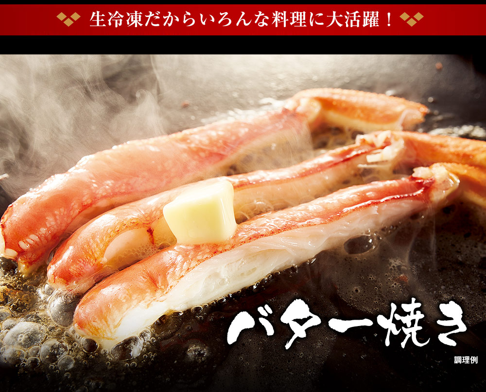 昨年、一昨年とお鍋用、天ぷら用にとほかの商品を購入しました。とても美味しかったです。タラバはまだ注文したことがないので、今年はバター焼をしたいな!と思い注文しました。剥き身になっているのが魅力的です!50代女性 あっちゃん様 ※個人の感想です。