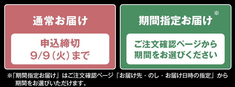 ・同一のお届け先へ2点以上のお申込の場合、お届け日やお届けのタイミングが異なる場合がございます。お申込み締切日
