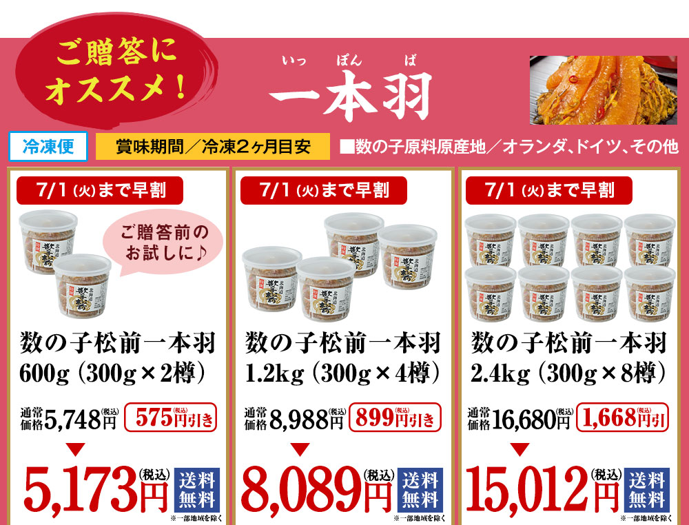 ベルーナで大人気の数の子松前!ご贈答におすすめ!一本羽!!