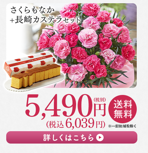 ●カーネーションさくらもなか5号、バスケット、ラッピング、母の日カード、手引書 -