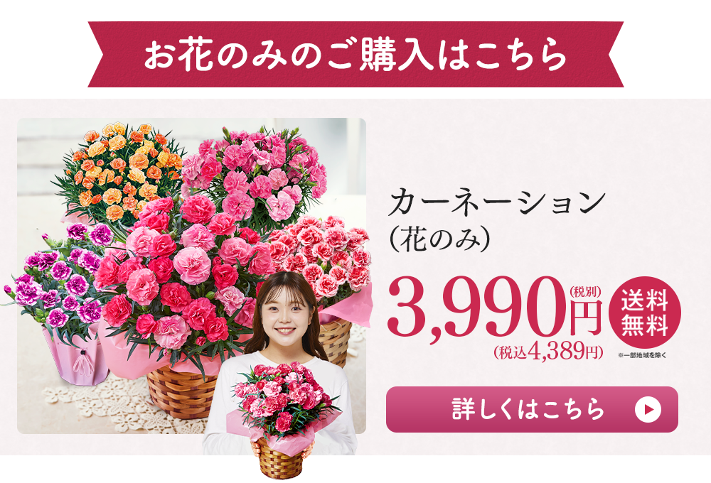 評価★★★★★母の日プレゼントに悩んでいた時、ベルーナグルメで母の日特集を見てカーネーションを気に入り妻に内緒で、母の日プレゼントとして送ったら義母が大感激を妻から聞き、妻から感謝されました。有難う御座いました。