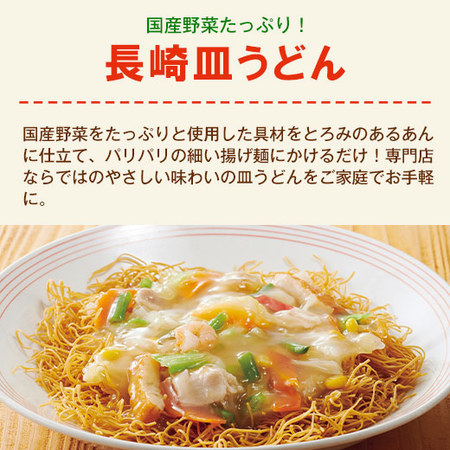 国産野菜をたっぷりと使用した具材をとろみのあるあんに仕立て、パリパリの細い揚げ麺にかけるだけ!専門店ならではのやさしい味わいの皿うどんをご家庭でお手軽に。