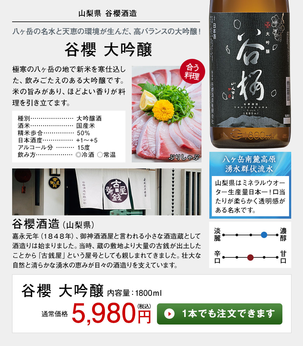 ■〈山梨県〉谷櫻酒造【谷櫻 大吟醸】≪八ヶ岳南麓高原湧水群伏流水≫