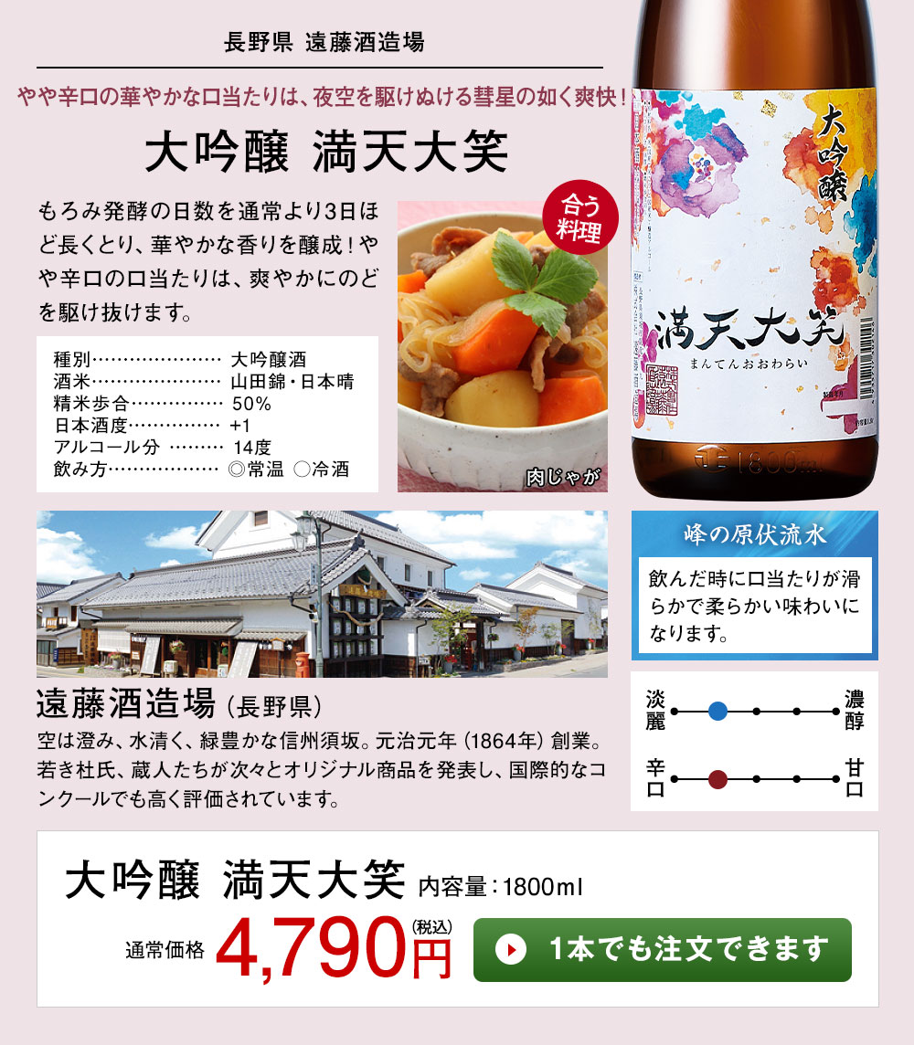 ■〈長野県〉遠藤酒造場【大吟醸 満天大笑】≪峰の原伏流水≫