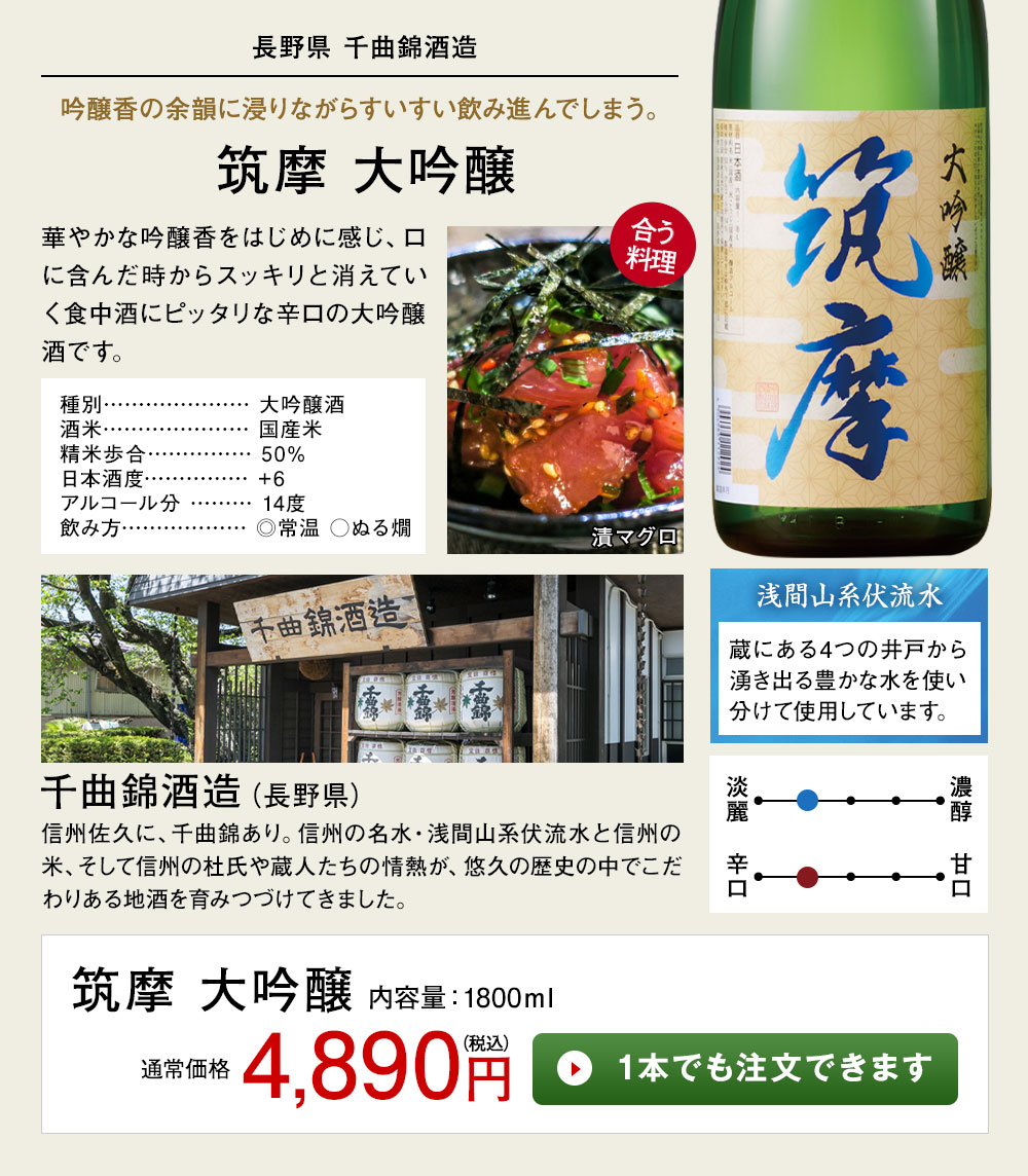 ■〈長野県〉千曲錦酒造【筑摩 大吟醸】≪浅間山系伏流水≫
