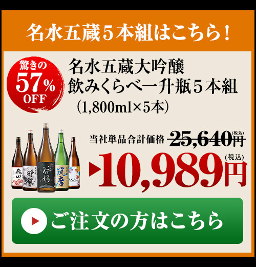≪57%OFF!≫名水五蔵大吟醸飲みくらべ一升瓶5本組