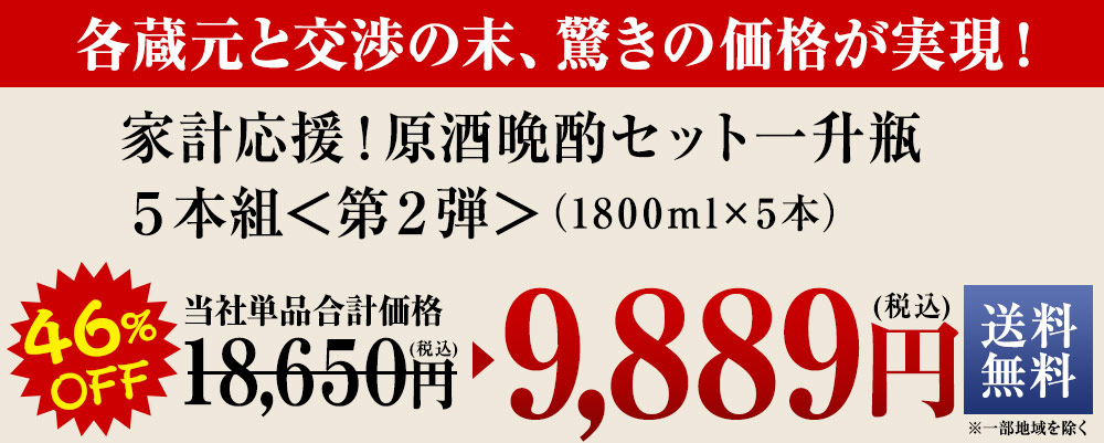 ≪49%OFF!≫家計応援!原酒晩酌セット一升瓶5本組<第2弾>