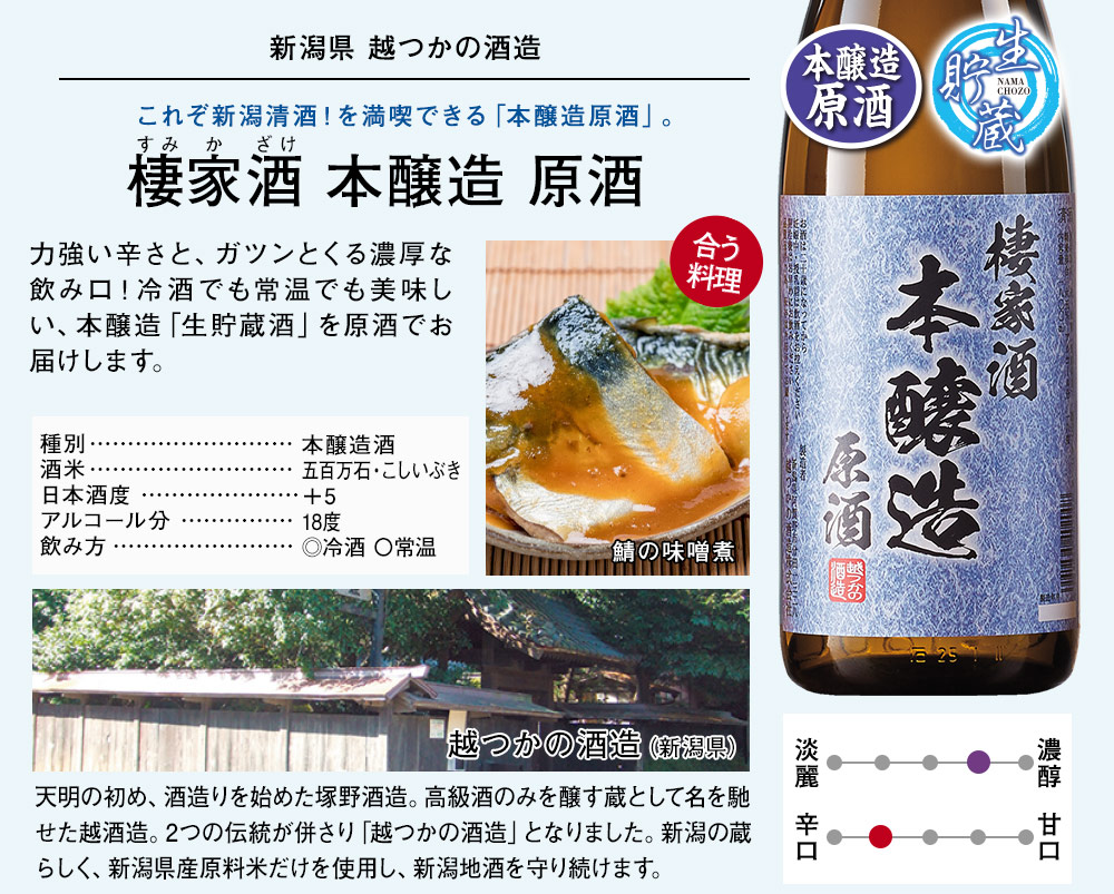 ■〈新潟県〉越つかの酒造【棲家酒 本醸造 原酒】