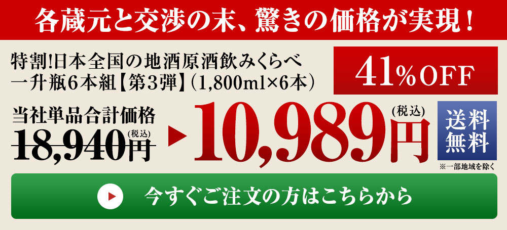 ≪46%OFF!≫特割!日本全国の地酒原酒飲みくらべ一升瓶6本組<第3弾>