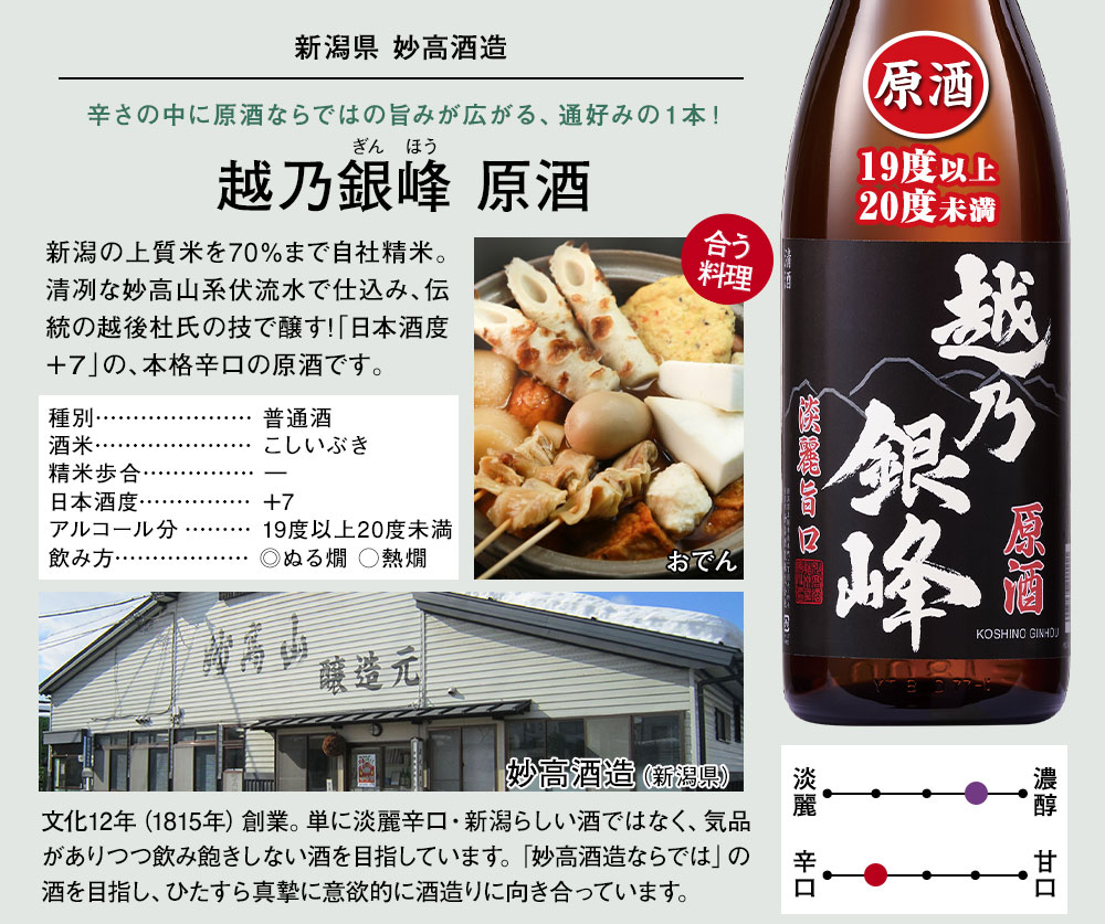 ■〈新潟県〉妙高酒造【越乃銀峰 原酒】