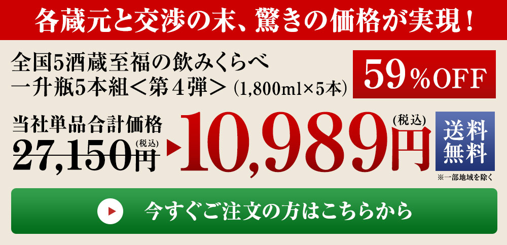 〝なんとしても一度、飲んでいただきたい〞その一心で蔵元と打ち合わせを重ね、こんな豪華なセットがこの衝撃価格で実現!全国5蔵の意地とプライドが詰まった5本です!自信を持っておすすめするセットです!この機会にぜひお試しください!