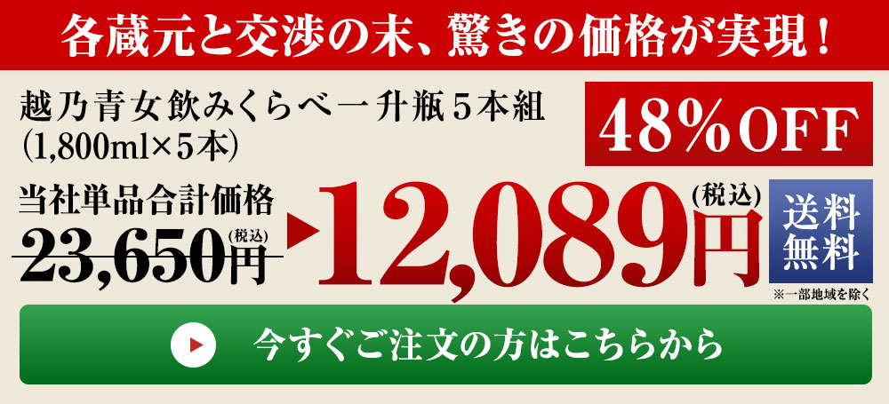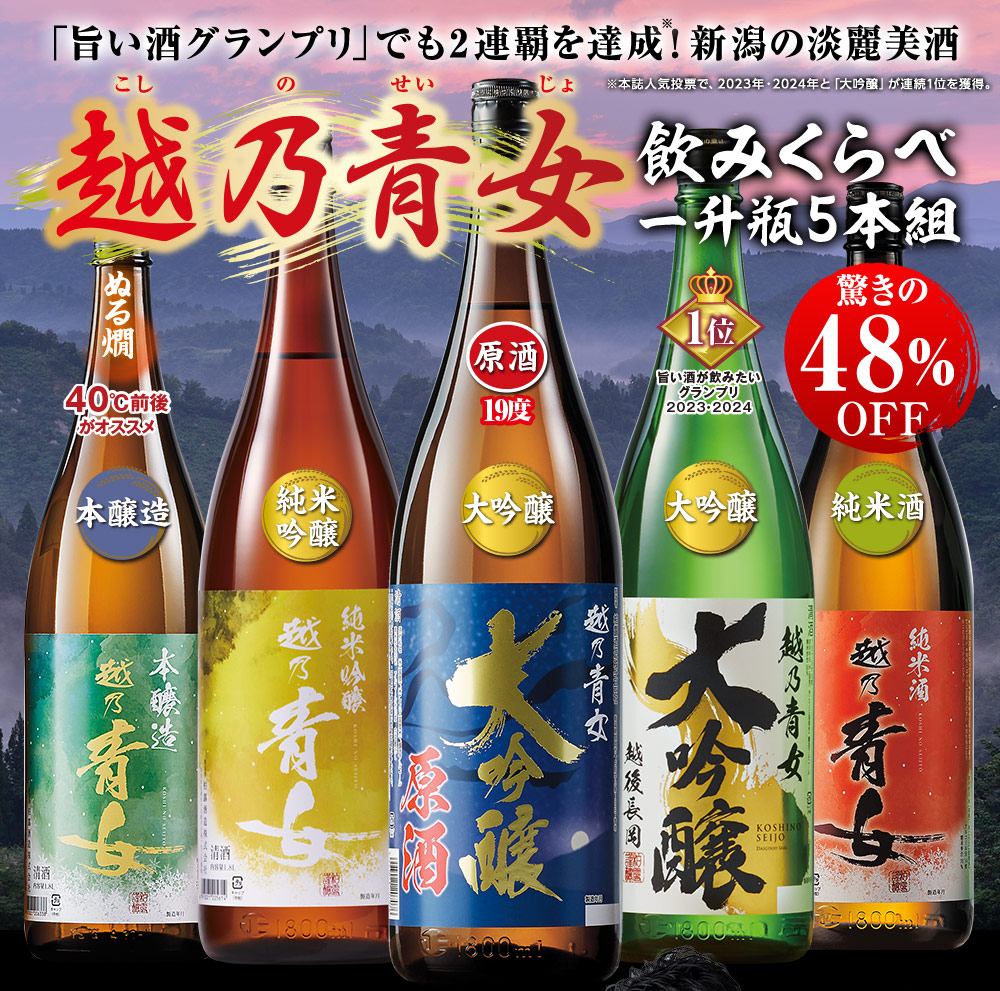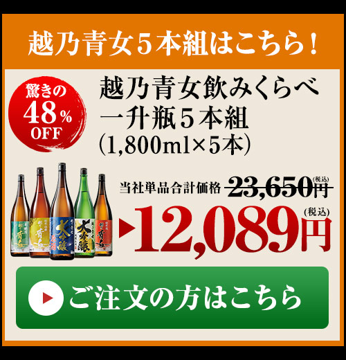 ≪48%OFF!≫越乃青女飲みくらべ一升瓶5本組
