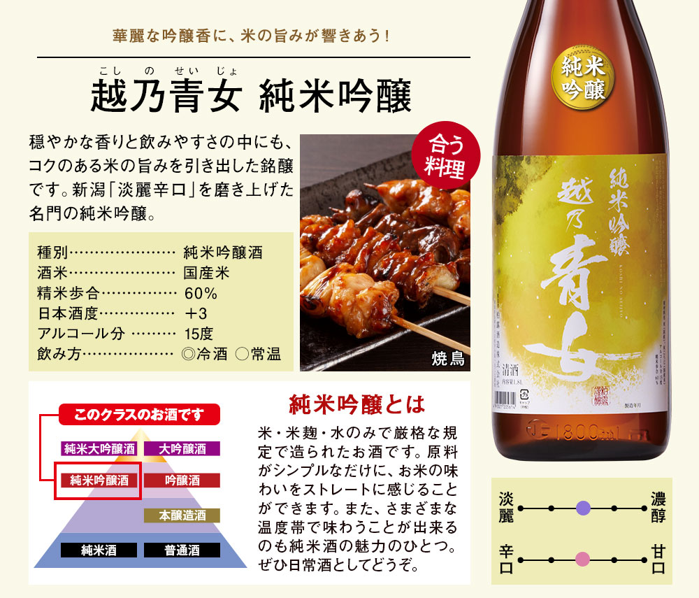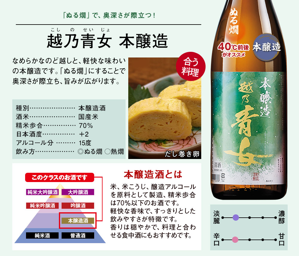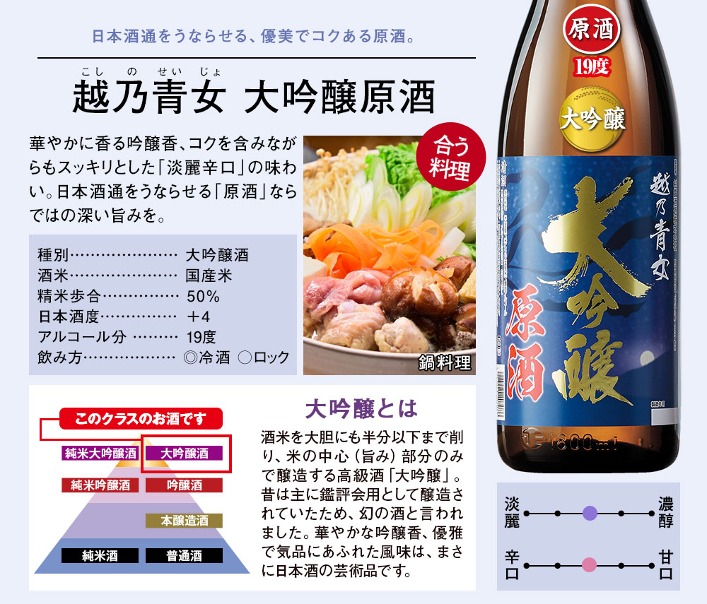 - 種別 大吟醸酒・純米吟醸酒・純米酒・本醸造酒