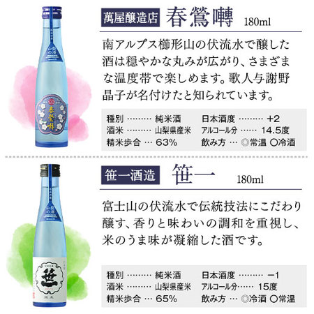 【父の日お届け】名山の水 山の酒 山梨の酒 純米酒飲み比べ7本セット