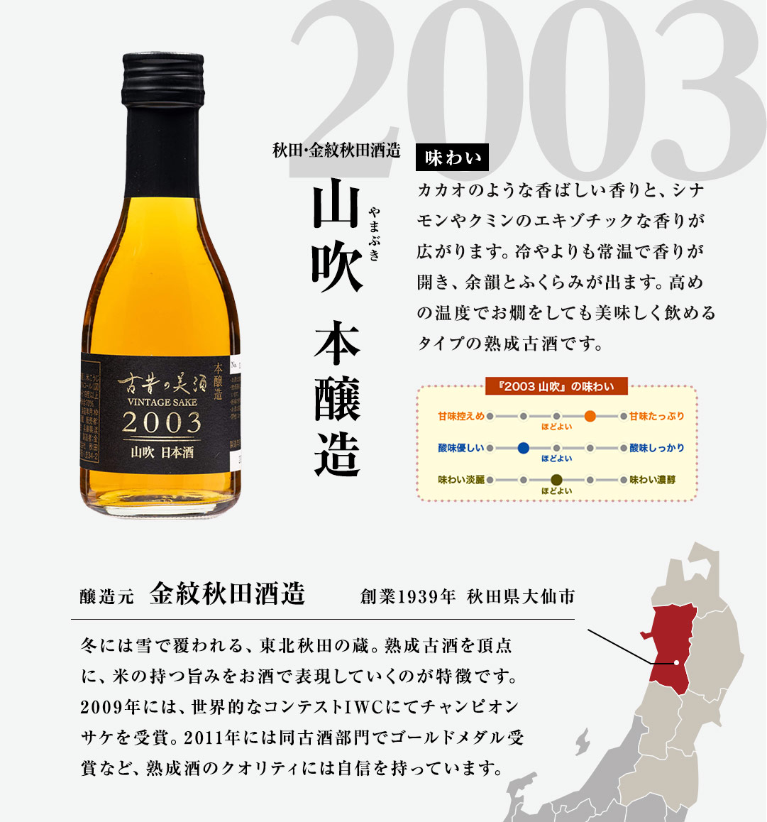 ■〈秋田県〉金紋秋田酒造【2003 山吹】