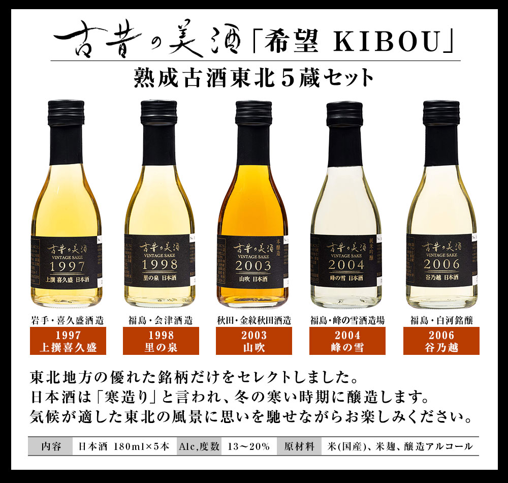古昔の美酒 希望 熟成古酒東北5蔵180ml5本組