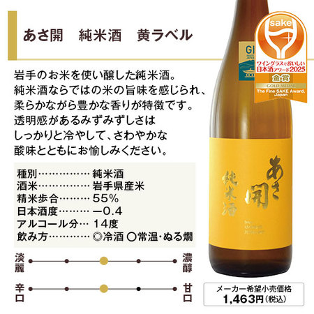◎あさ開 純米酒 黄ラベル