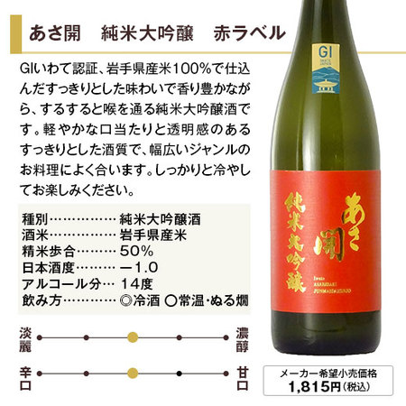 ◎あさ開 純米大吟醸 赤ラベル