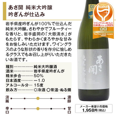 ◎あさ開 純米大吟醸 吟ぎんが仕込み