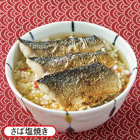 さば塩焼き45g×2袋、秋さけ塩焼き40g×2袋、ぶり照り焼き40g×2袋、味付数の子わさび味50g×2袋、生ほたてオニオンわさび50g×2袋、五色あられ10袋、和風だし10袋 - 加工地 日本