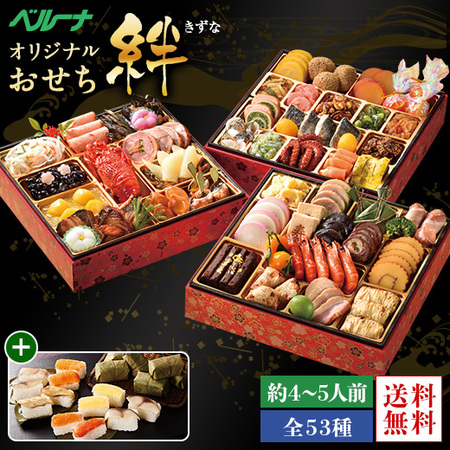 ベルーナオリジナルおせち絆〈8.5寸和洋中三段〉と柿の葉寿司セット【12月29日お届け】
