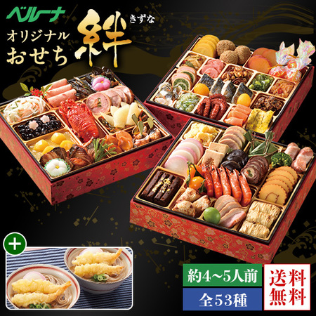 ベルーナオリジナルおせち絆〈8.5寸和洋中三段〉と年越しそばセット【12月29日お届け】