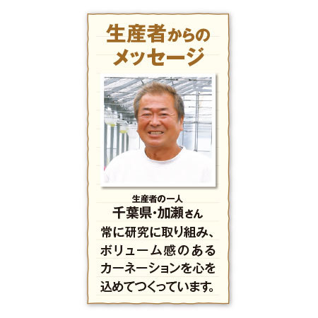 濃いピンクから薄いピンクにうつりゆく花色が美しく、一輪一輪がボリューム感のあるイチオシカーネーション。