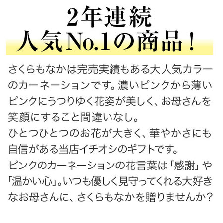 ≪早割★600円オフ≫カーネーションさくらもなか5号とカステラセット【5月6日―10日お届け】