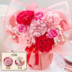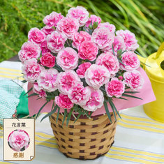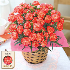 ●カーネーションさくらもなか5号、バスケット、ラッピング、母の日カード、手引書4,389円税込