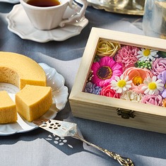 華やかなお花があしらわれたギフトボックスに