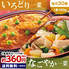 ボリューム&しっかり味の、主菜特化タイプ。お届け内容:毎回15種×2食