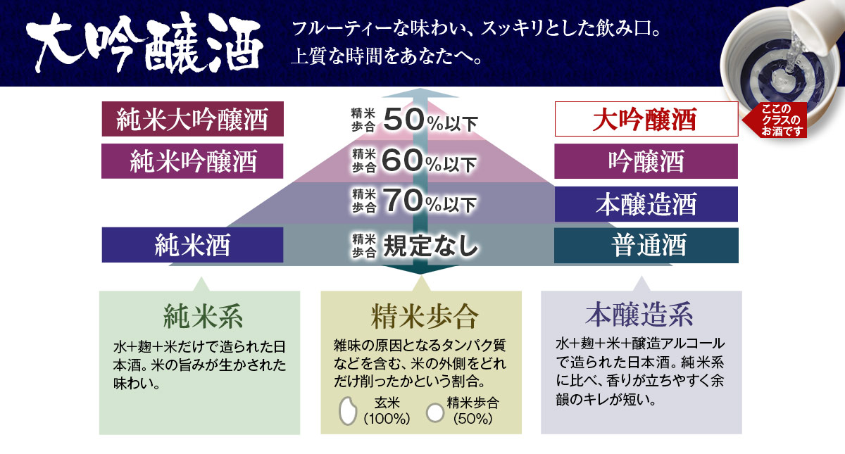 種別:純米大吟醸酒・大吟醸酒・純米酒・普通酒
