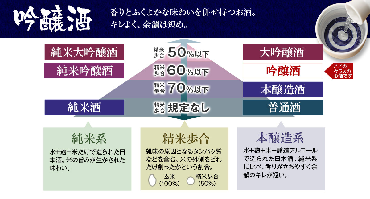 蔵元自慢の「魅惑の香り」、感謝を込めてお届けいたします!種別:大吟醸酒・吟醸酒・純米酒・普通酒