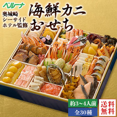 お申込締切:12月24日(水)21時迄お届け内容:●ベルーナオリジナルおせち彩寿:和洋中三段重(盛付済)/約2―3人前/全46種