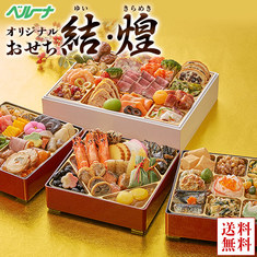 お申込締切:12月24日(水)21時迄お届け内容:●ベルーナオリジナルおせち結:和三段重(盛付済)/約2―3人前/全46種