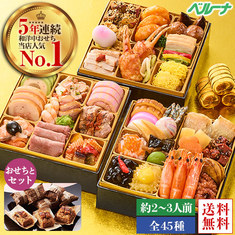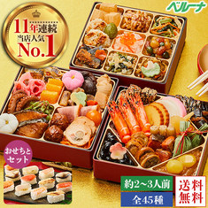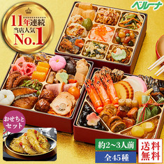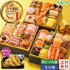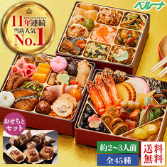 お申込締切:12月24日(水)21時迄お届け内容:●ベルーナオリジナルおせち彩寿:和洋中三段重(盛付済)/約2―3人前/全46種