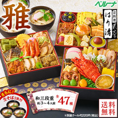 お申込締切:12月24日(水)21時迄お届け内容:和三段重(盛付済)/約3-4人前/全47種