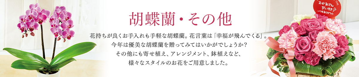 WESCFK002 カテゴリ『胡蝶蘭・その他』で検索した結果、該当する商品はみつかりませんでした。