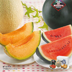 お申込締切:07月23日(木)お届け内容:●北海道産赤肉メロン1.3kg前後×1玉、麓郷黒小玉すいか1.3kg前後×1玉